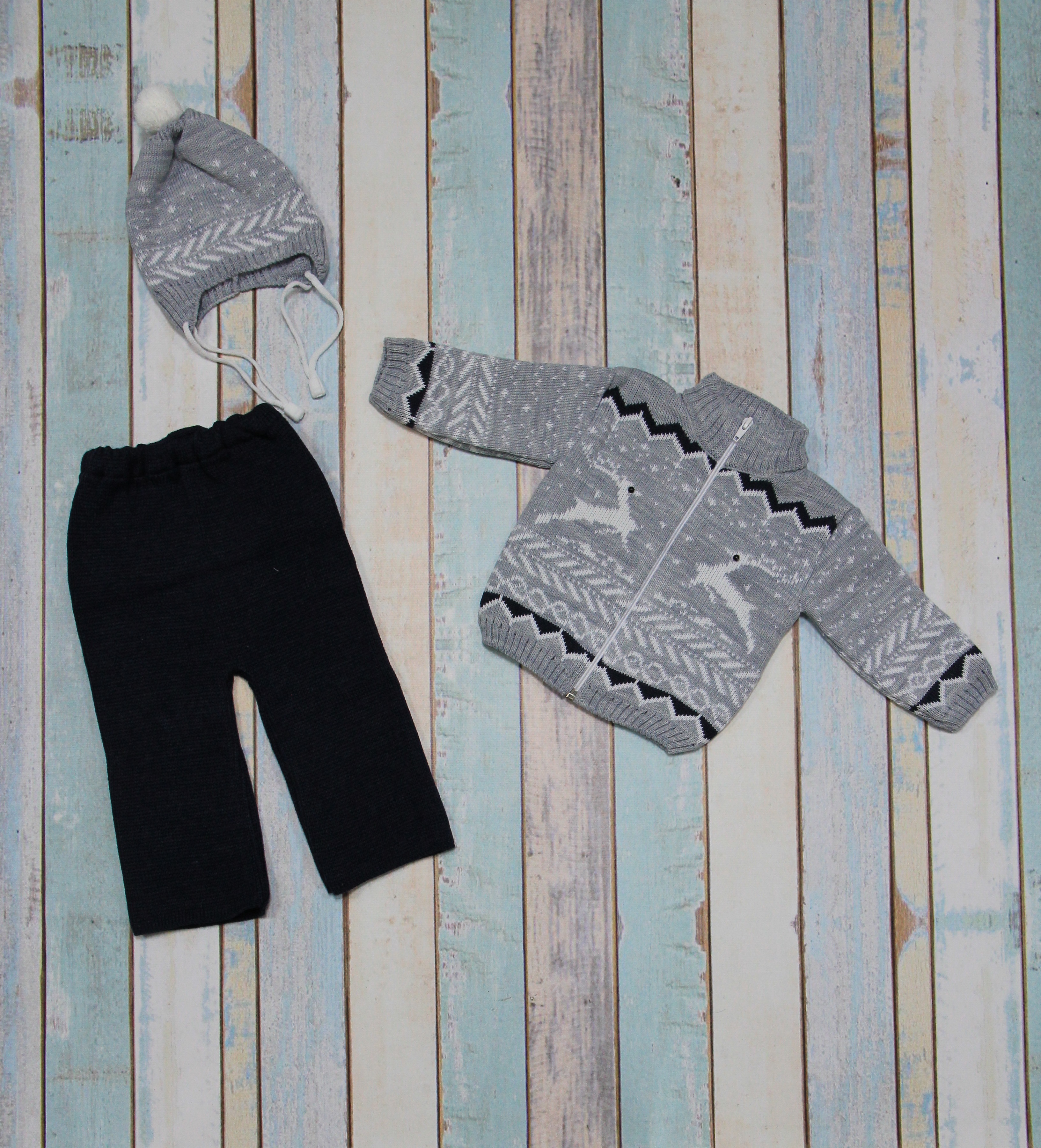 "МоёДитё" костюм из 3-х предметов "Олени" серый "Лотос" в Артёме