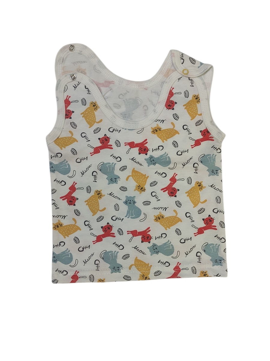 Маечка выполнена из 100% хлопка (кулирка), с кнопочками на плечиках.