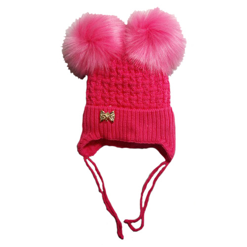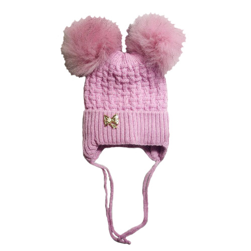 Шапка на девочку  (Велсофт) с двумя помпонами