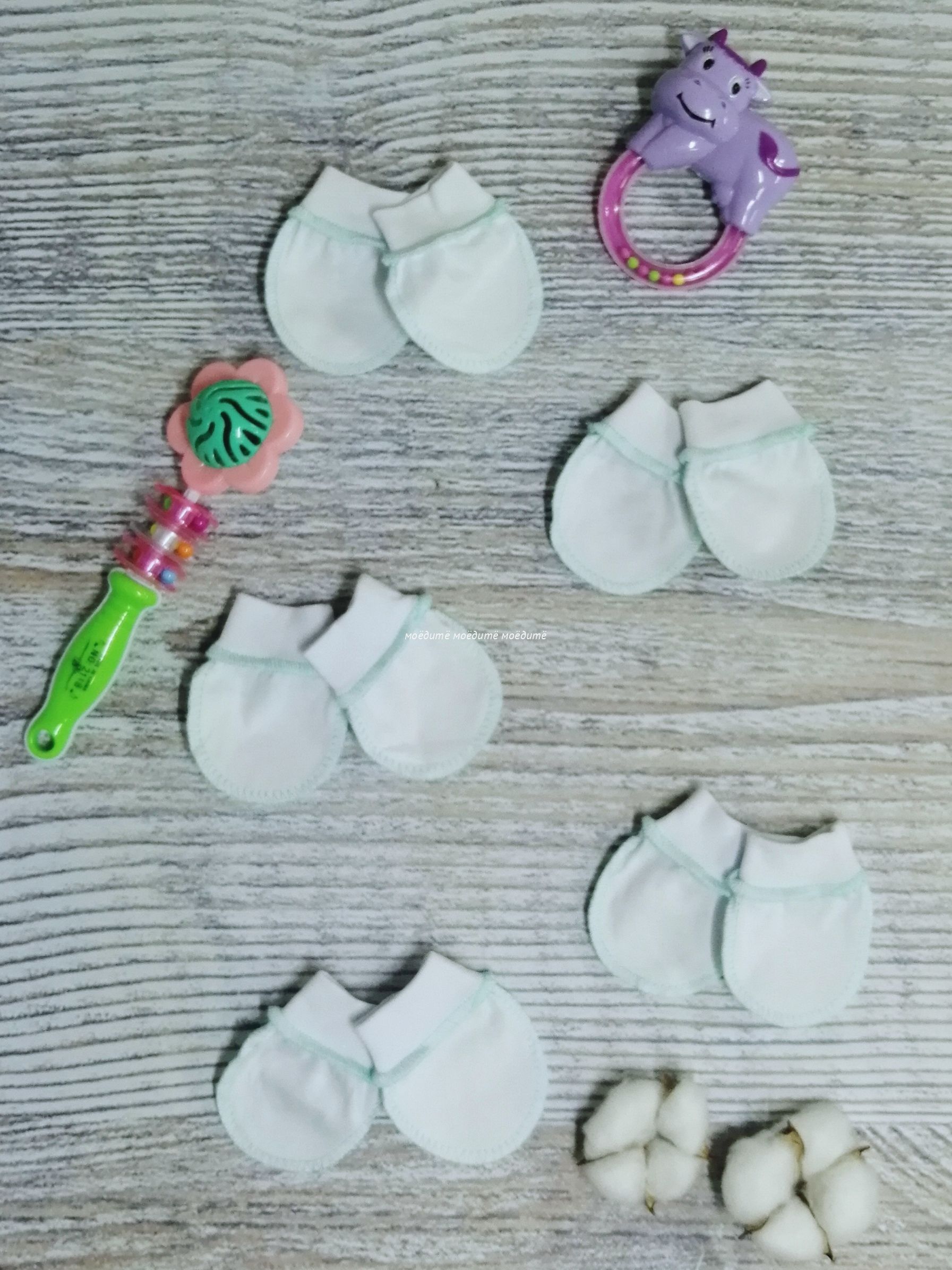"МоёДитё" царапки кулирка белые + мята ЦК018 "Гардения" в Артёме